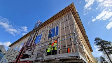 C-lohkolla on käynnissä julkisivun puuverhoustyöt