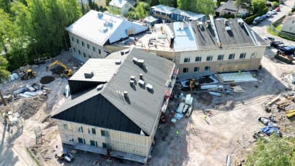 - A-lohkolla on käynnissä julkisivun puuverhous-, levyseinä, tasoitus- ja maalaus- ja talotekniikkatyöt