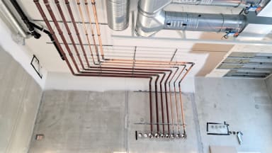 B-lohkon liikuntasalin katon talotekniikka-asennuksia