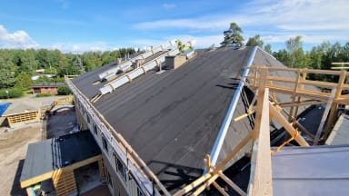 A-lohkolla jatkuvat kattopellityksen asennustyöt