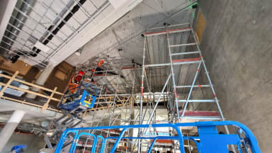 - Talon keskiaulassa tehdään kipsiväliseiniä ja alakattotöitä.