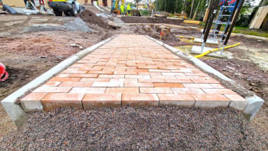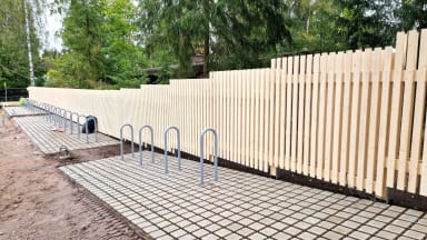 - Pihalla on käynnissä reunakivien ja laatoitusten, leikkivälineiden, piha-aitojen ja kaiteiden asennustyöt.