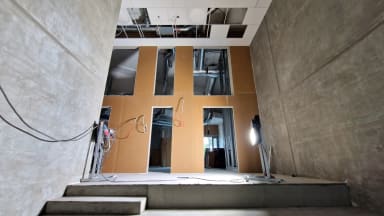 - Talon keskiaulassa tehdään talotekniikkatöitä.