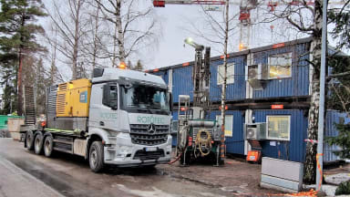 Maalämpölaitteiston poraukset on toistaiseksi tehty. Työt jatkuvat keväällä.