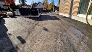 - Pihalla on käynnissä piharakennusten kattojen pellitykset, valaisinpylväiden asennukset sekä viher- ja leikkivälineiden asennustyöt eri alueilla.