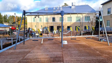 - Pihalla on käynnissä viher- ja leikkivälineiden asennustyöt eri alueilla sekä julkisivujen aurinkosuojasäleikköjen asennus eri puolilla taloa.