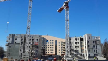 Kuva 4. Elementtiasennus on jatkunut tällä viikolla auringonpaisteessa.