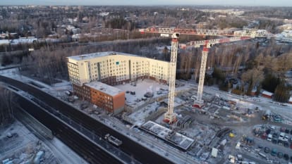 Kuva 2. Työmaan toinen torninosturi pystytettiin viimeviikolla.