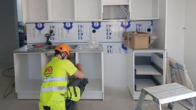 Kylpyhuoneiden laattapohjatyöt ovat edenneet neljänteen kerrokseen ja vesieristystöitä tehdään toisessa kerroksessa. Asuntojen tasoite- ja maalaustyöt ovat valmiit. Porraskäytävien tasoite- ja maalaustyöt jatkuvat. Kalusteasennus on käynnissä viidennessä kerroksessa.