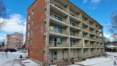 Julkisivumuuraus on valmis ja työmaa-aikainen hissi on purettu. Rakennuksen hissi on saatu käyttöön tämän viikon aikana. Tasoitetyöt ovat edenneet neljänteen kerrokseen ja maalaustyöt ovat käynnissä ensimmäisessä ja kolmannessa kerroksessa. Kylpyhuoneiden pintojen oikaisutyöt ovat käynnissä toisessa ja kolmannessa kerroksessa. Sähkötöitä tehdään yleisissä tiloissa. Patterien ja lämpölinjojen asennustyöt ovat käynnissä koko talossa.