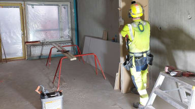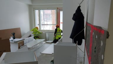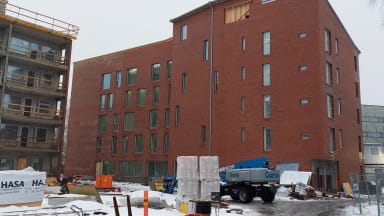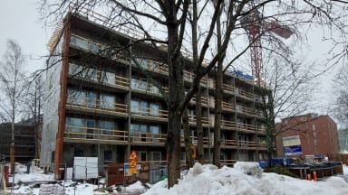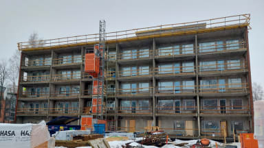 Julkisivujen ikkunapellitystyöt ovat käynnissä. Tasoite- ja maalaustyöt ovat käynnissä viidennessä kerroksessa. Ensimmäisen kerroksen asuntojen kalusteasennus alkoi torstaina.