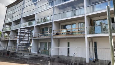 Asunnoissa viimeistelyt on valmistuneet. Piha-alueella pyörätelineet asennettiin tällä viikolla. Parvekkeiden vedenpoistojärjestelmän asennustyöt on valmiit.