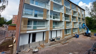 Asuntojen ja yleisten tilojen IV-mittaukset ja säätötyöt on saatu valmiiksi. Asunnoissa viimeiset viimeistelykorjaukset on vielä käynnissä. Yleisissä tiloissa on myös viimeistelytyöt käynnissä ja talosaunojen puutyöt ovat valmistuneet tällä viikolla.