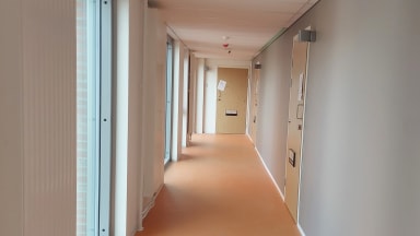 Asunnoissa viimeistelytyöt käynnissä alimmissa kerroksissa. Yleisissä tiloissa alakattolevyjen asennukset ja mattotyöt ovat valmistuneet, samoin myös yleisten tilojen varustelu on saatu valmiiksi.
