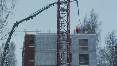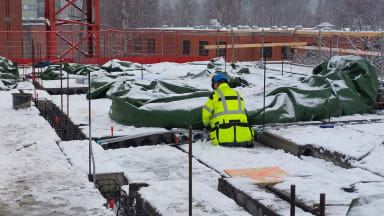 Maanantaina asennettiin neljännen kerroksen ontelolaatat ja sen jälkeen tehtiin holvin raudoitustöitä ja sähköputkien varauksia. Maanrakennustyöt jatkuvat edelleen ulkopuolisilla täytöillä.