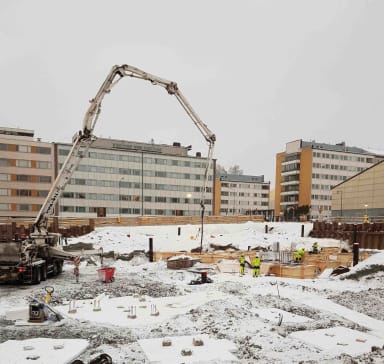 Taidelukio Lumitin työmaalla on kuluvalla viikolla valettu ensimmäiset rakennuksen anturat A-lohkolla. Anturoita valettiin keskiviikkona ja perjantaina yli 100 m3. Maanrakennustyöt etenevät D-lohkolla suunnitellusti. Työmaa on joulun ja uuden vuoden välipäivät auki normaalisti, jolloin perustustöitä jatketaan A- ja B-lohkoilla. Ensi vuoden alusta työmaalla päästään valamaan jo paalulaattoja. Mukavaa joulun odotusta!