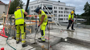 Torstaina pumpattiin pystysaumat, sekä tehtiin holvin raudoitus- ja tuketöitä. Myös ensimmäiset, 3. kerroksen parvekelaatat asennettiin torstaina.
