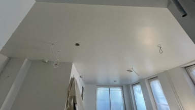 Tällä viikolla aloitettiin asuntojen vinyyliasennukset kahdessa kerroksessa. Maalaustyöt saatiin viimeisessäkin kerroksessa valmiiksi, ja maalarit siirtyivät maalaamaan porraskäytävää. Myös kerhohuoneen äänikatto sai valmiin pinnan.