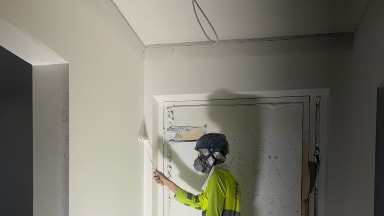 Taitava työntekijämme Asko kipsilevy hommissa