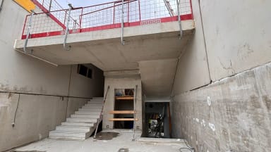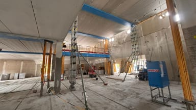 Työmaalla on jatkettu elementtiasennuksen parissa. Kolmannen kerroksen holvilla päästiin tänään tekemään juotosvaluja, ja IV-konehuoneen seinäelementit on asennettu paikalleen.