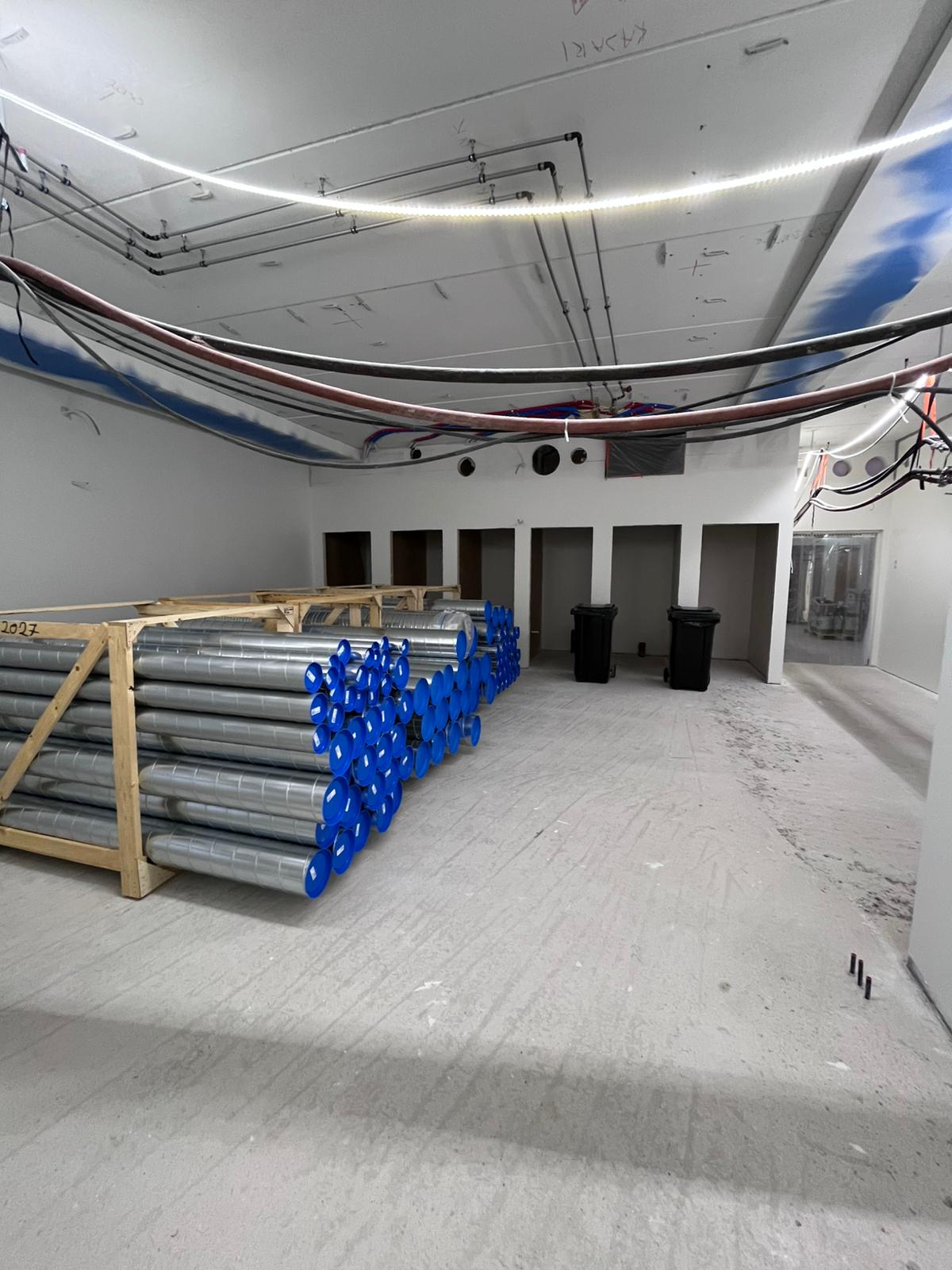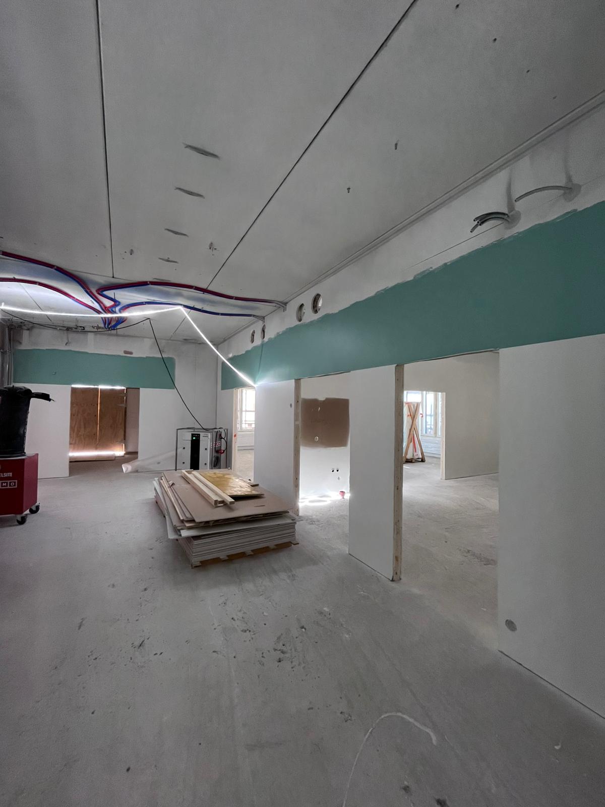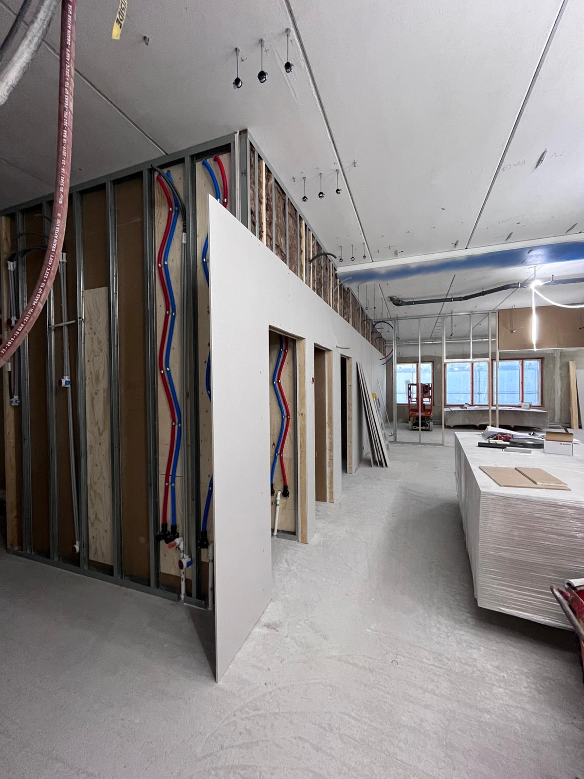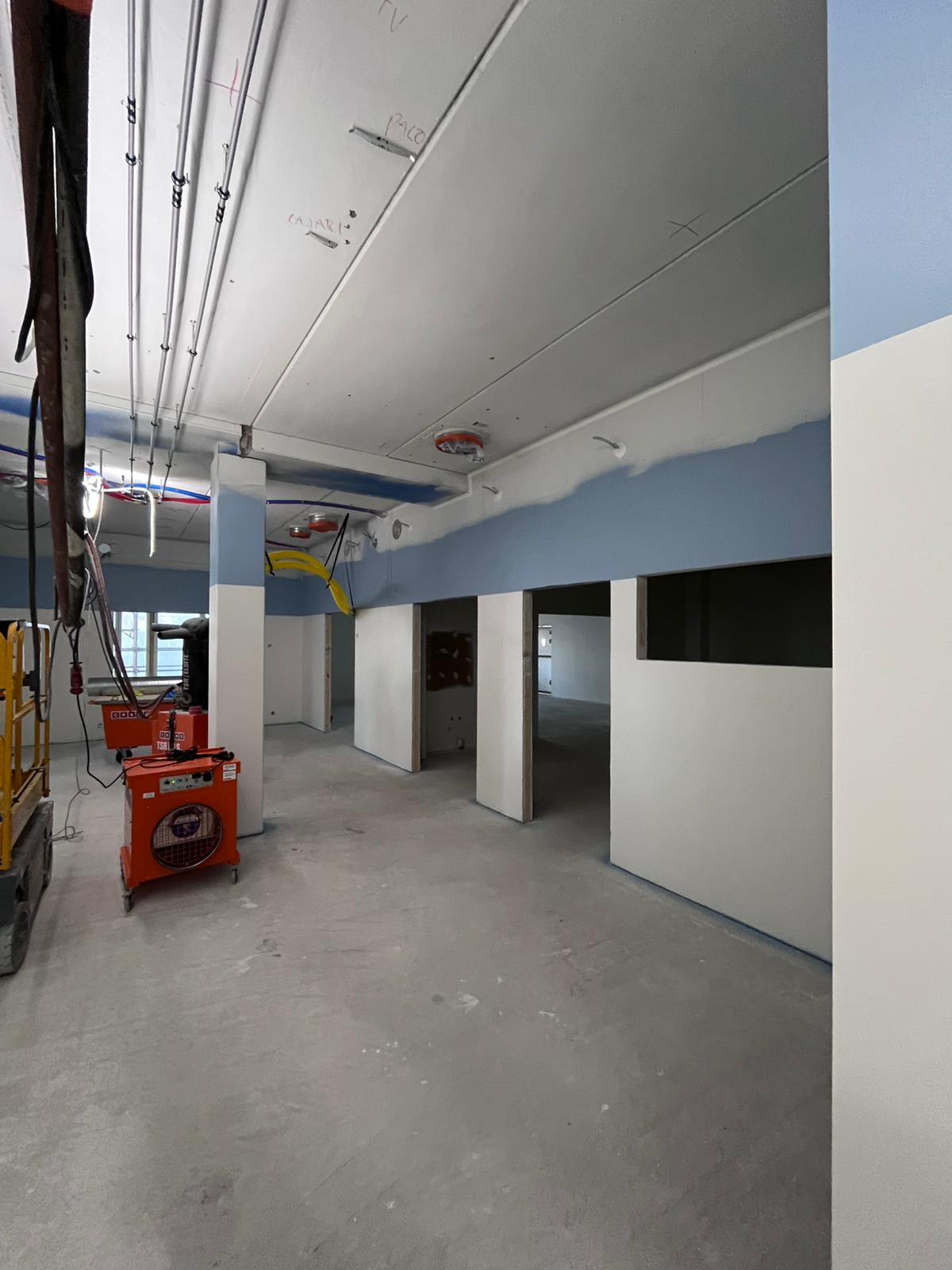 Työmaa on edennyt edellisen tiedotteen jälkeen reilusti eteenpäin ja kolmannessa kerroksessa ollaankin saatu maalaus ja tasoitustyöt jo valmiiksi. Koulun värimaailma alkaakin hahmottua kolmannen kerroksen soluaulojen osalta. Seuraavana käynnistyvät kolmannen kerroksen IV-työt, jotka suoritetaan P1 puhtausluokan vaatimusten mukaan.