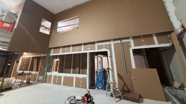 Väliseinätyöt ovat myös edenneet, ja nyt on saatu seinäpaikalleen myös valoaukon reunalle. Muilta osin valoaukon ympärille tullaan asentamaan lasikaide.