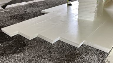 Maanvaraisten lattioiden lämmöneristystyöt ovat parhaillaan käynnissä C-lohkolla.