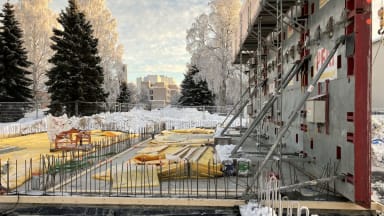 Sokkelielementtien asennukset on aloitettu C-lohkolla.