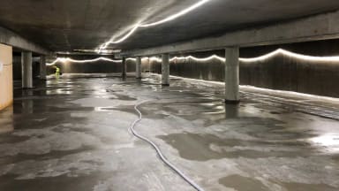 Rumba-veistoksen alapuolisen pysäköintitilan lattia valettuna kerroksessa K1.