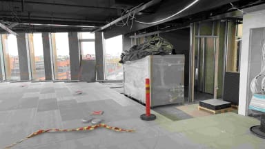 Holvin ja tekniikan mustamaalaus, asennuslattian alapuolinen plaano ja kaapeloinnit 11krs