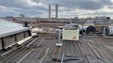 7krs katon raudoitustöiden taustalla pilkistää viherkatto