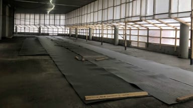 Sortumasuojalaatan päälle tehdään talotekniikka-asennuksia ja täyttötöitä.