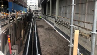 Väliaikainen viemäröinti-järjestelmä, jonka avulla vedet saadaan johdettua pois vettäpitävistä kerroksista.
